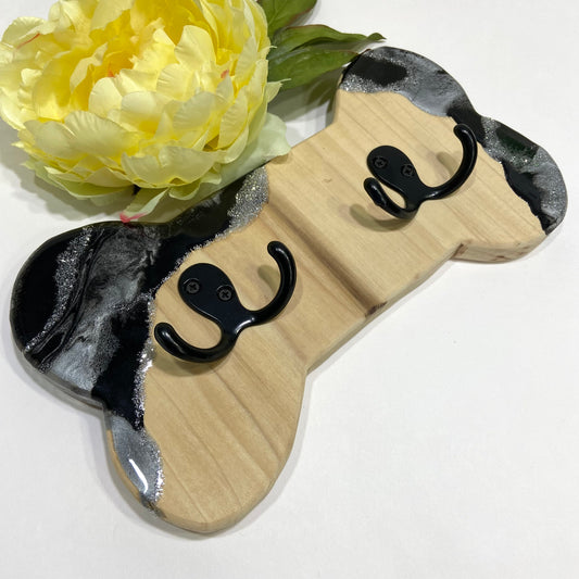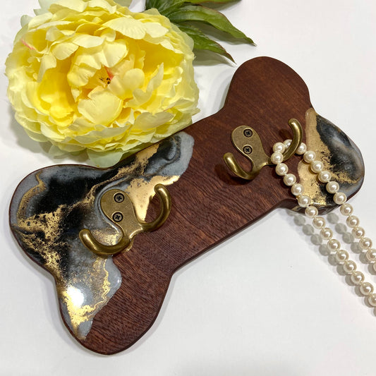 Dog Bone Leash or Coat Hanger: Sapele Wood with Swirling Black and White Resin Design