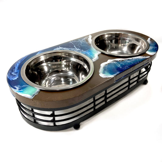 Ocean Waves Elevated Double Dog Bowl Stand: Stylish Comfort for Mealtimes
